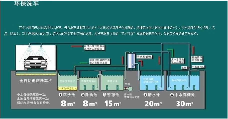 1.洗車循環(huán)水系統(tǒng)UItraCIean 在回收水方面將變得輕松經(jīng)濟(jì),洗車后廢水流入初沉淀池,大顆粒物體在此驚醒絮凝沉淀